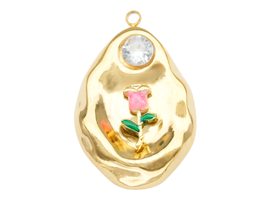 ACERO DORADO DIJE LAGRIMA TULIPAN ZIRCON 27*17MM