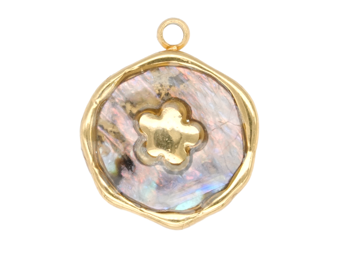 ACERO DORADO DIJE REDONDO FLOR NACAR IRISADO 13MM