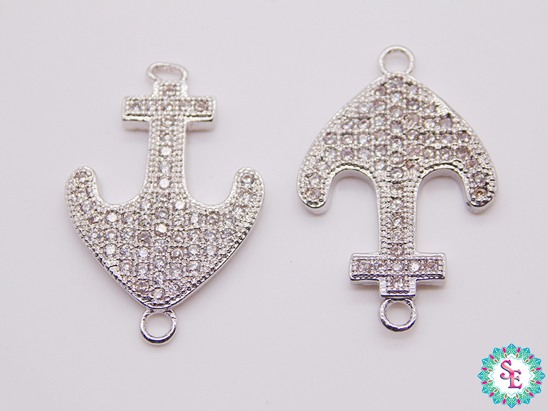 Descubre la belleza y la elegancia de nuestro Ancla Plateada Mediana con circones blancos, una pieza excepcional para tus proyectos de bisutería.