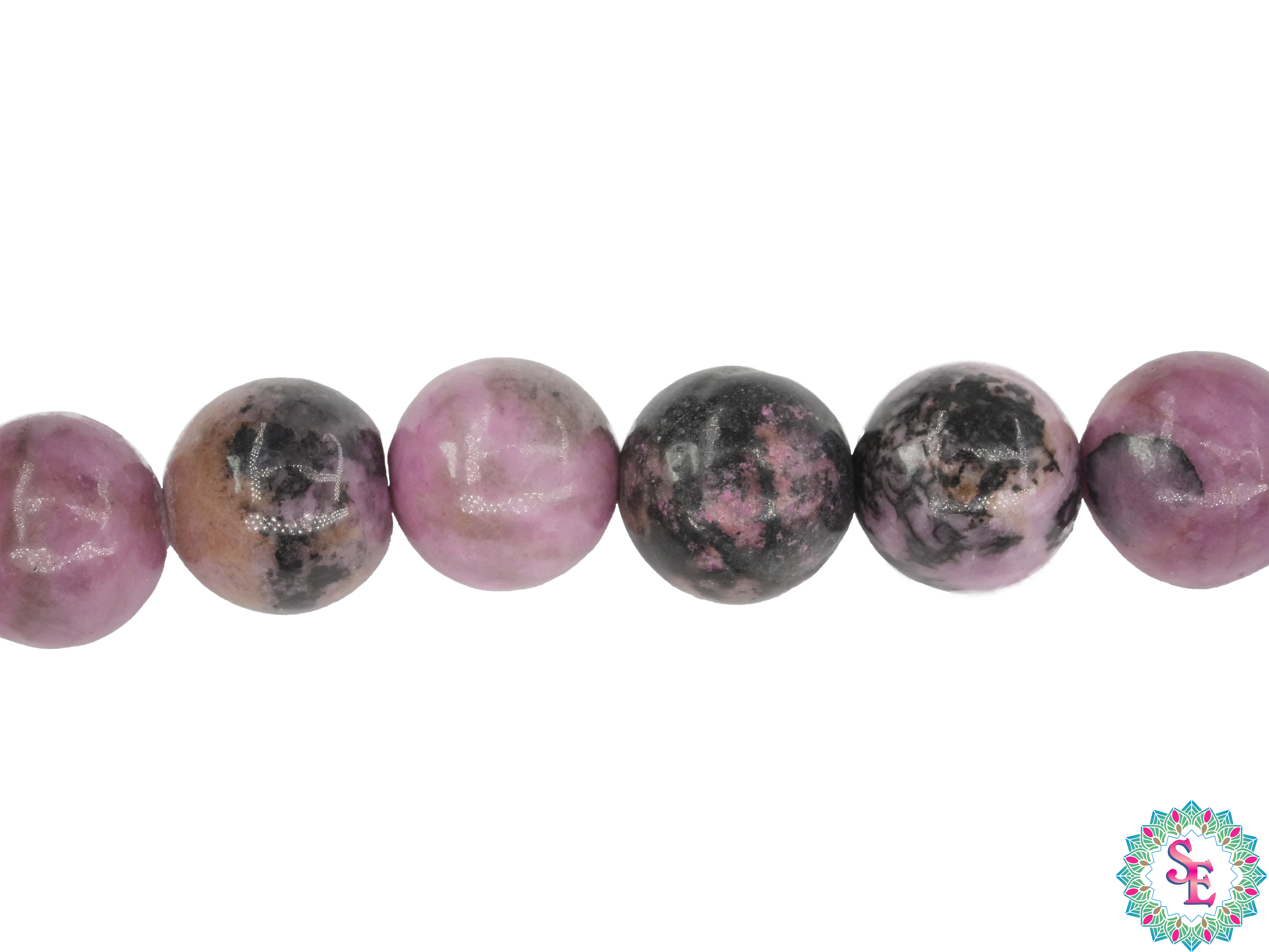 Cada cuenta de 8 mm ha sido cuidadosamente seleccionada para ofrecerte una sarta de piedra natural de alta calidad con el distintivo color rosado característico de la Rodonita. Esta piedra es conocida por su belleza y propiedades de sanación emocional, ya que se cree que promueve el amor propio, la compasión y la armonía emocional.